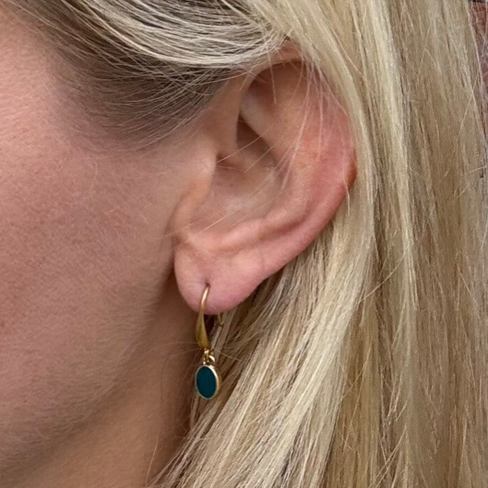 Hanger emaille ovaal 10 mm x 6 mm, donker petrol, stainless steel.